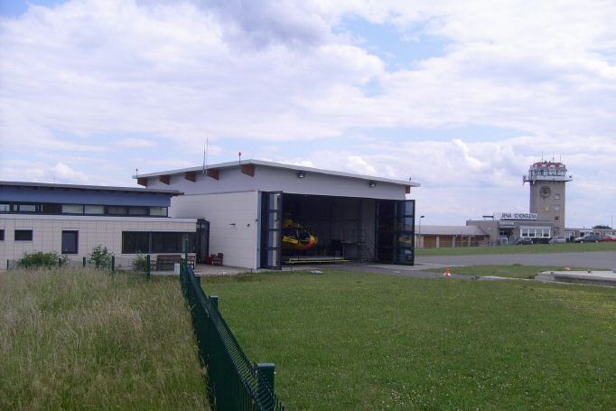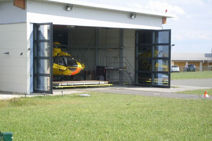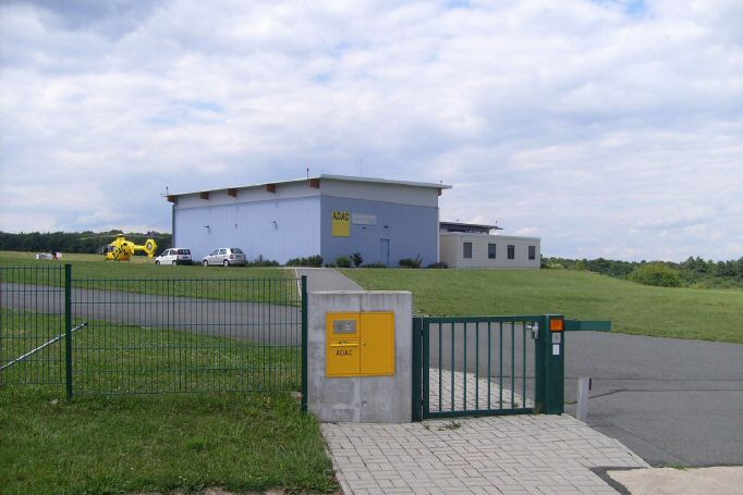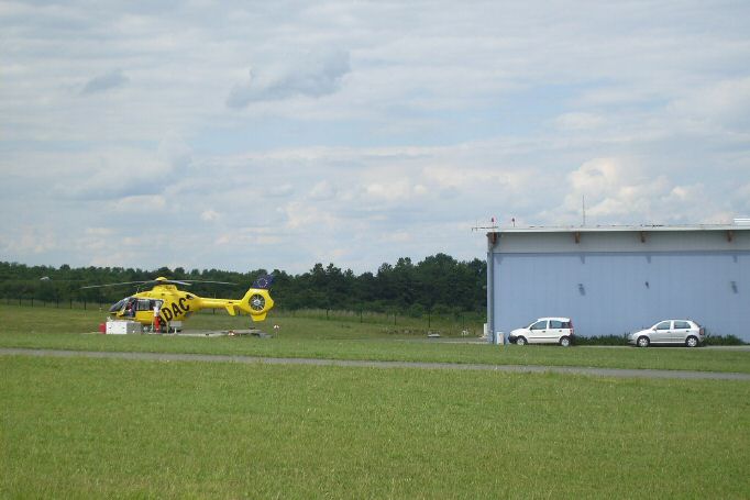 Ein Blick "über den Zaun" bei Christoph 70 an seiner Basis, dem Flugplatz Jena-Schöngleina. Zum Zeitpunkt der Aufnahme flog dort eine EC 135 mit der Kennung D-HJAR.
